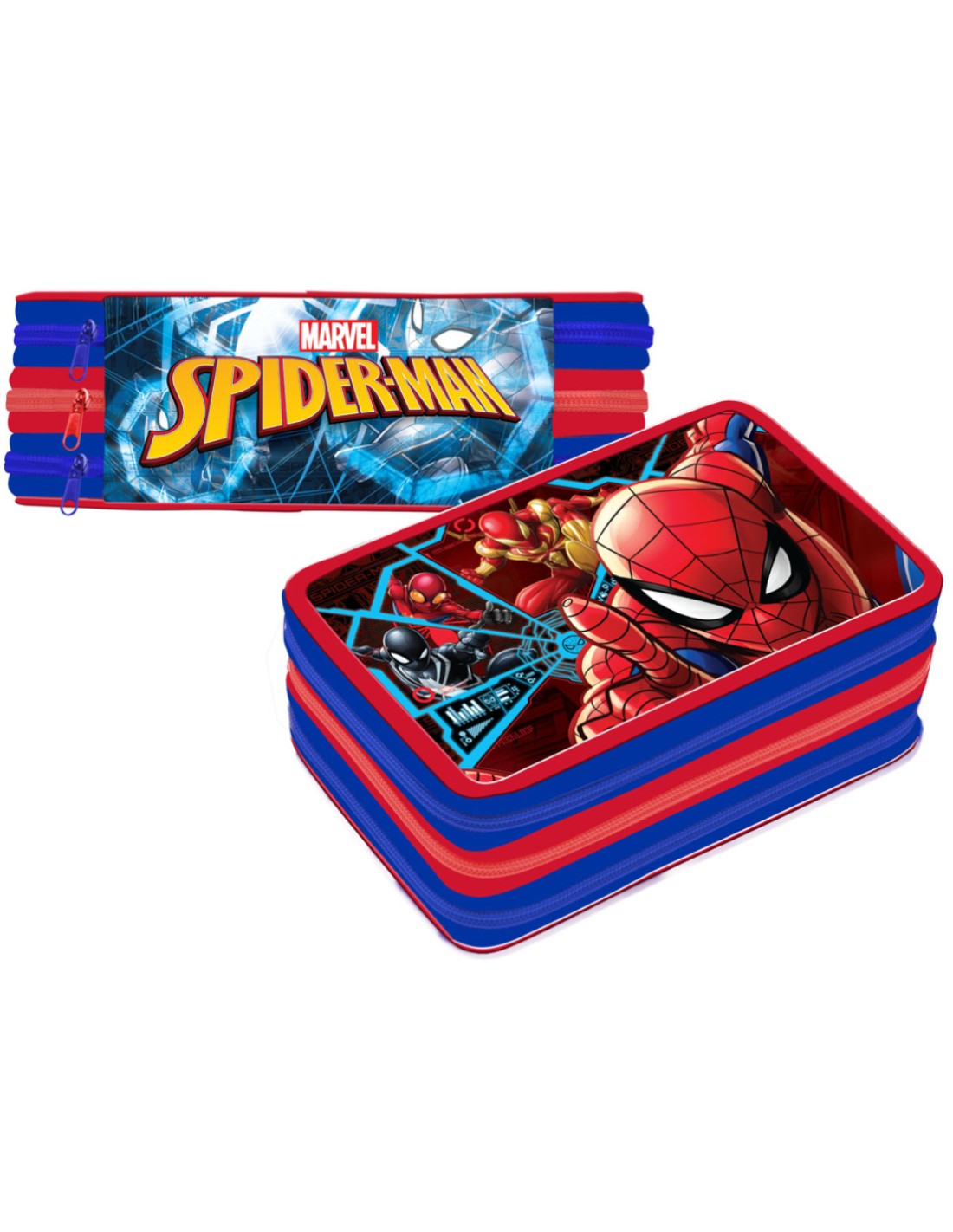 With its practical 3 zip design, this pencil case is perfect for keeping everything organized and easily accessible. Featuring Spiderman design, it will be the perfect companion for every young fan of this Marvel superhero, adding a touch of courage and action to their school routine.