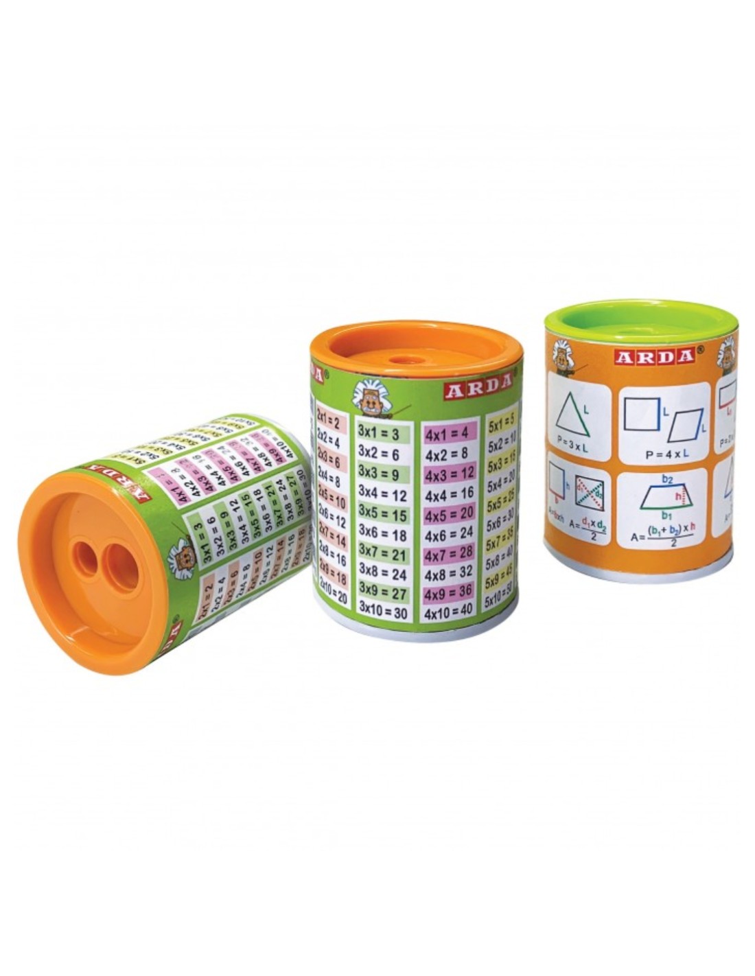 The sturdy tin body features colorful prints with geometry formulas and multiplication tables, turning everyday schoolwork into a fun learning experience. With two sharpening holes, it works with both standard and jumbo pencils, making it a truly practical choice.