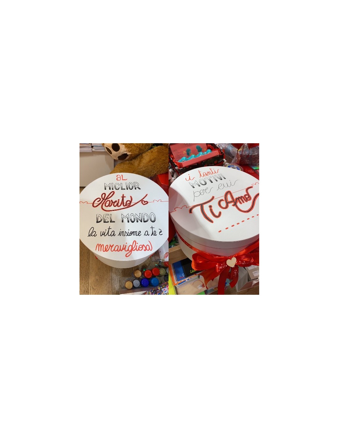 Don't forget to save your customization to be able to add to cartDo you want to make a unique and unforgettable surprise. Are you looking for something to amaze and leave a special person speechless. We have the perfect solution for you! At Cartoleria Varzi we create fully customizable items, such as our round box, inside which you can find:
