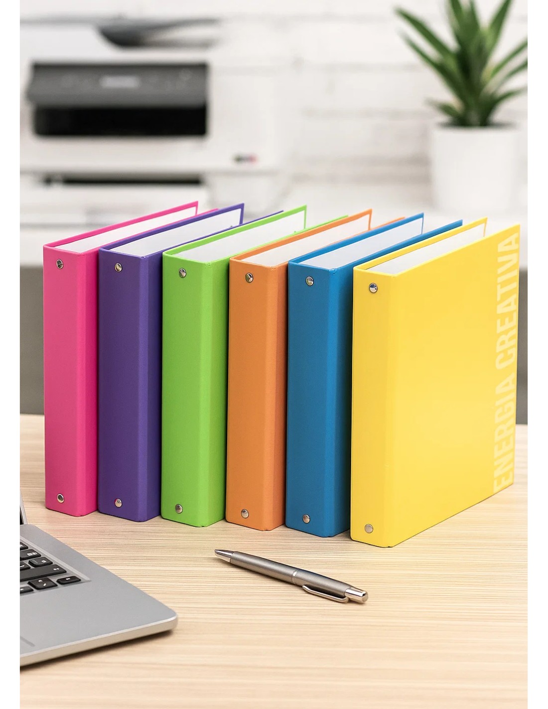 Keep your notes neat and stylish with the Scatto A5 Ring Binder emdash; a compact, durable, and practical solution for organizing documents at school, in the office, or at home. Crafted from sturdy cardboard with a glossy laminated paper cover, this binder offers long-lasting protection against scratches and wear, making it ideal for everyday use. The 4-ring metal mechanism allows you to easily add, remove, or rearrange A5 sheets as needed, helping you stay organized with minimal effort. Perfect for storing notes, worksheets, project materials or creative content, it combines functionality with vibrant design. The binder is available in a selection of bright assorted colors, adding a fun pop of personality to your backpack or desk. Whether for school subjects, to-do lists or personal projects, this A5 binder is a smart and colorful choice for everyday organization. Sold as a single item. Color will be shipped at random based on stock availability. If you have a color preference, feel free to mention it in the order notes and weersquo;ll do our best to accommodate it.