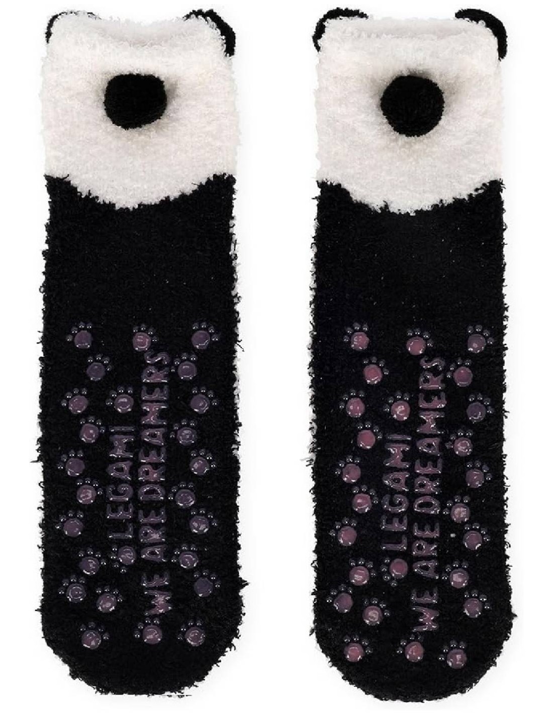 Il design, ispirato al tenerissimo panda, presenta un musetto ricamato con guance rosate e dolci occhioni espressivi, completato da orecchie tridimensionali che spuntano dalla parte superiore per un effetto ancora più realistico e adorabile. La combinazione dei colori bianco e nero, iconica e intramontabile, rende questi calzini eleganti e divertenti al tempo stesso, perfetti per chi ama gli accessori teneri ma dal carattere deciso.