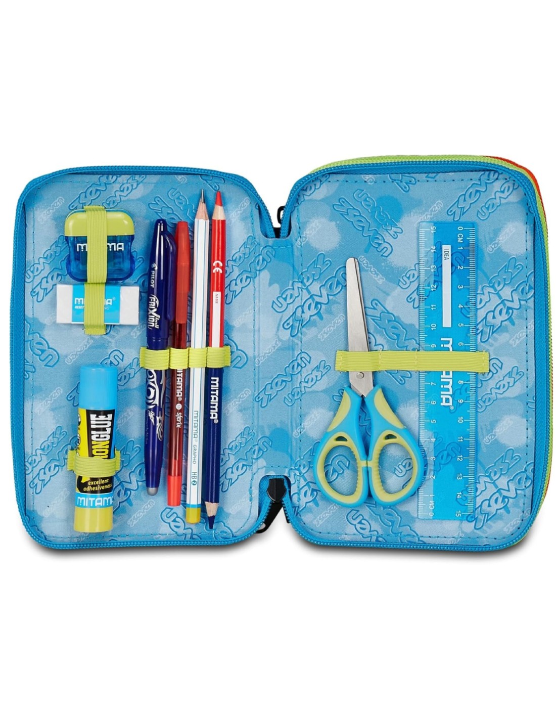 Perfetto per accompagnare le giornate scolastiche dei bambini, questo astuccio a triplo scomparto è la soluzione ideale per organizzare in modo efficiente tutto il materiale scolastico. Con dimensioni di 12,5 x 20 x 7 cm, offre un design compatto ma capiente, ideale per i bambini della Scuola Elementare.