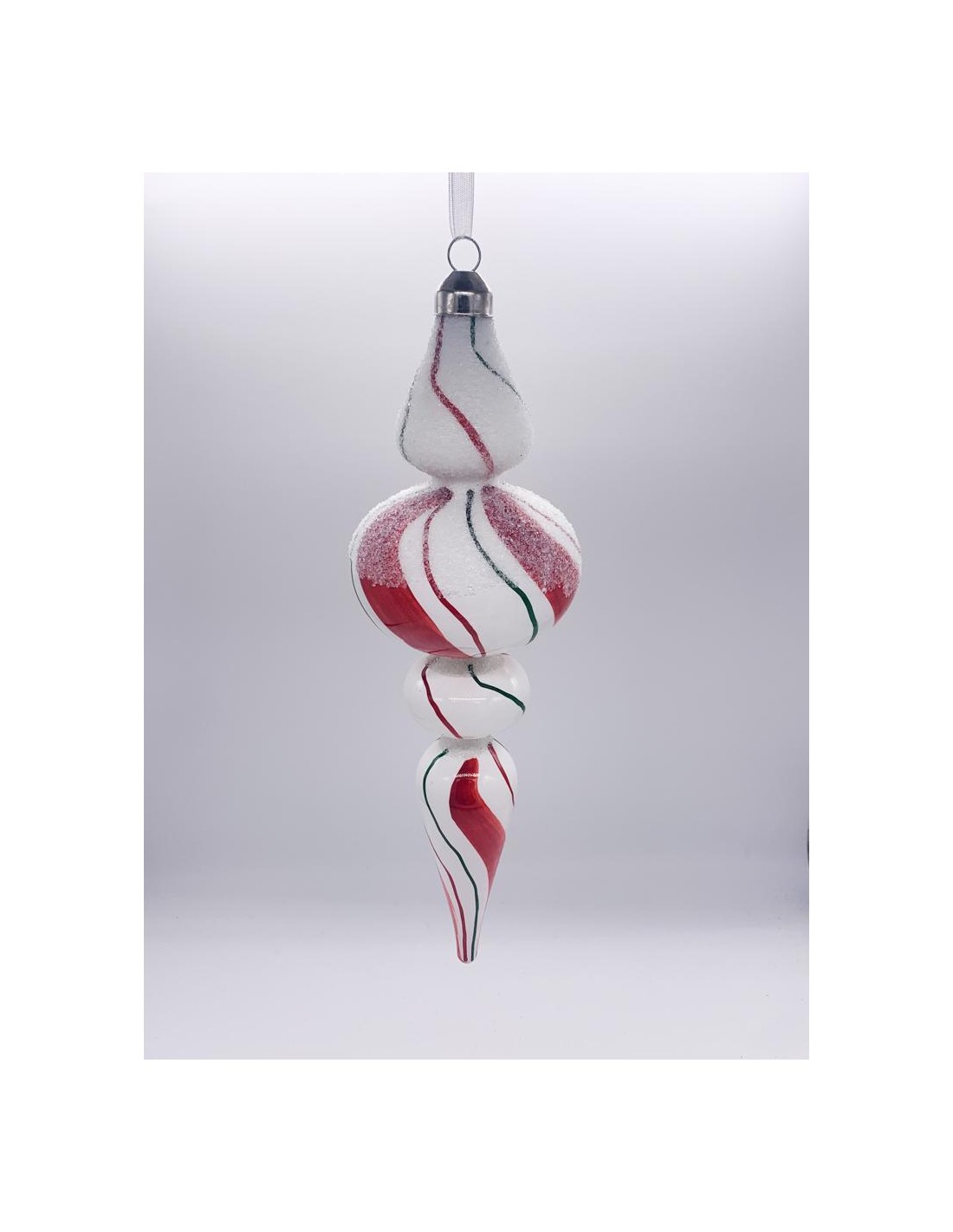 Addobbo Albero Di Natale In Vetro Cono A Strisce Con Effetto Neve 24cm