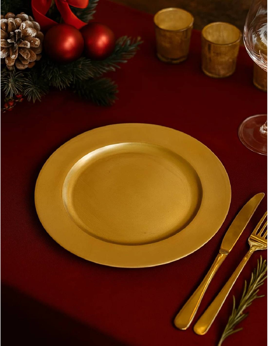 Con il suo diametro di 33cm, si adatta perfettamente a qualsiasi tipo di piatto, diventando una base decorativa ideale per cene natalizie, eventi speciali e occasioni eleganti. Il colore oro, simbolo di festa e tradizione, riflette la luce delle candele e delle decorazioni natalizie, contribuendo a creare un’atmosfera calda e accogliente.